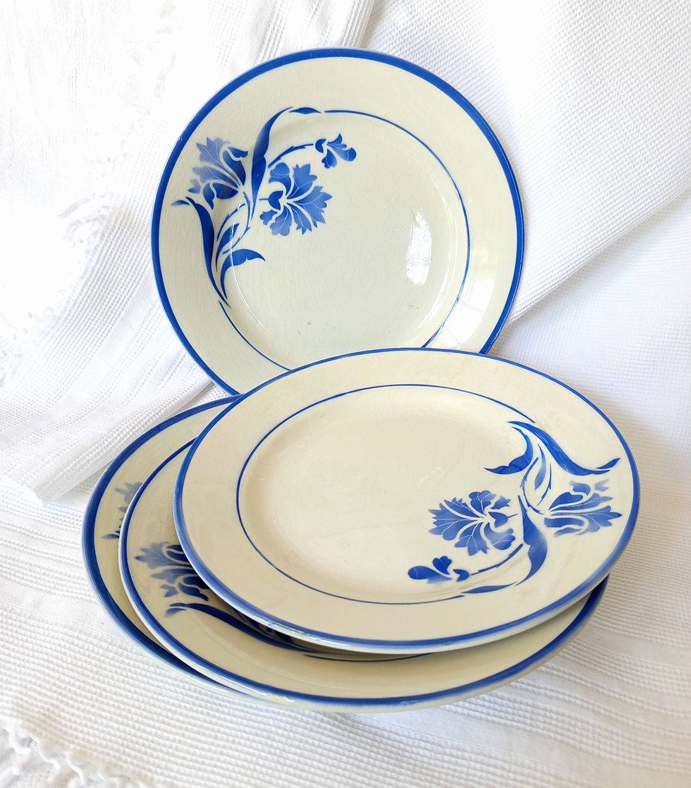 Lot de 4 assiettes plates fleuries bleues - décor " Alberic" Gien
